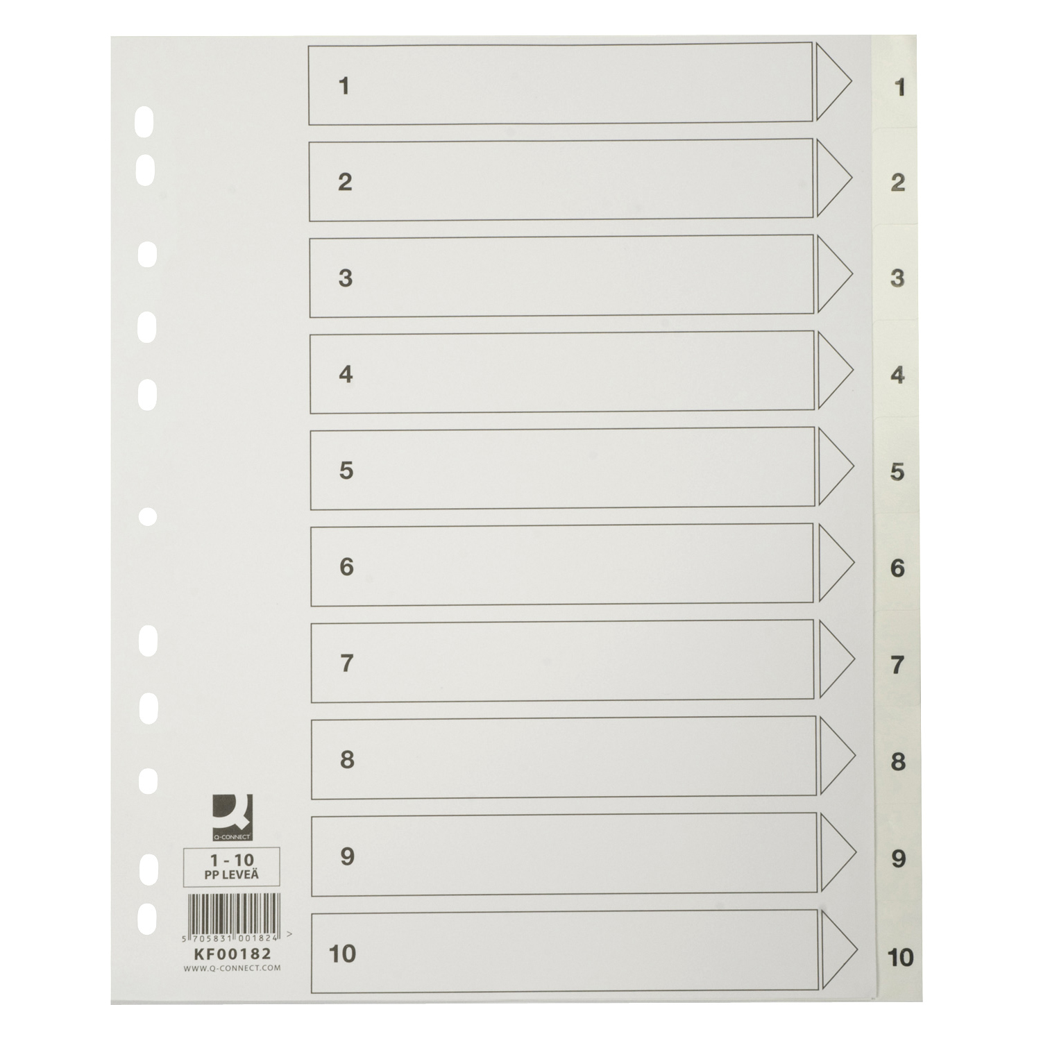 White PP divider A4 11 holes, 120 mic, 10 parts (1 - 10), index sheet