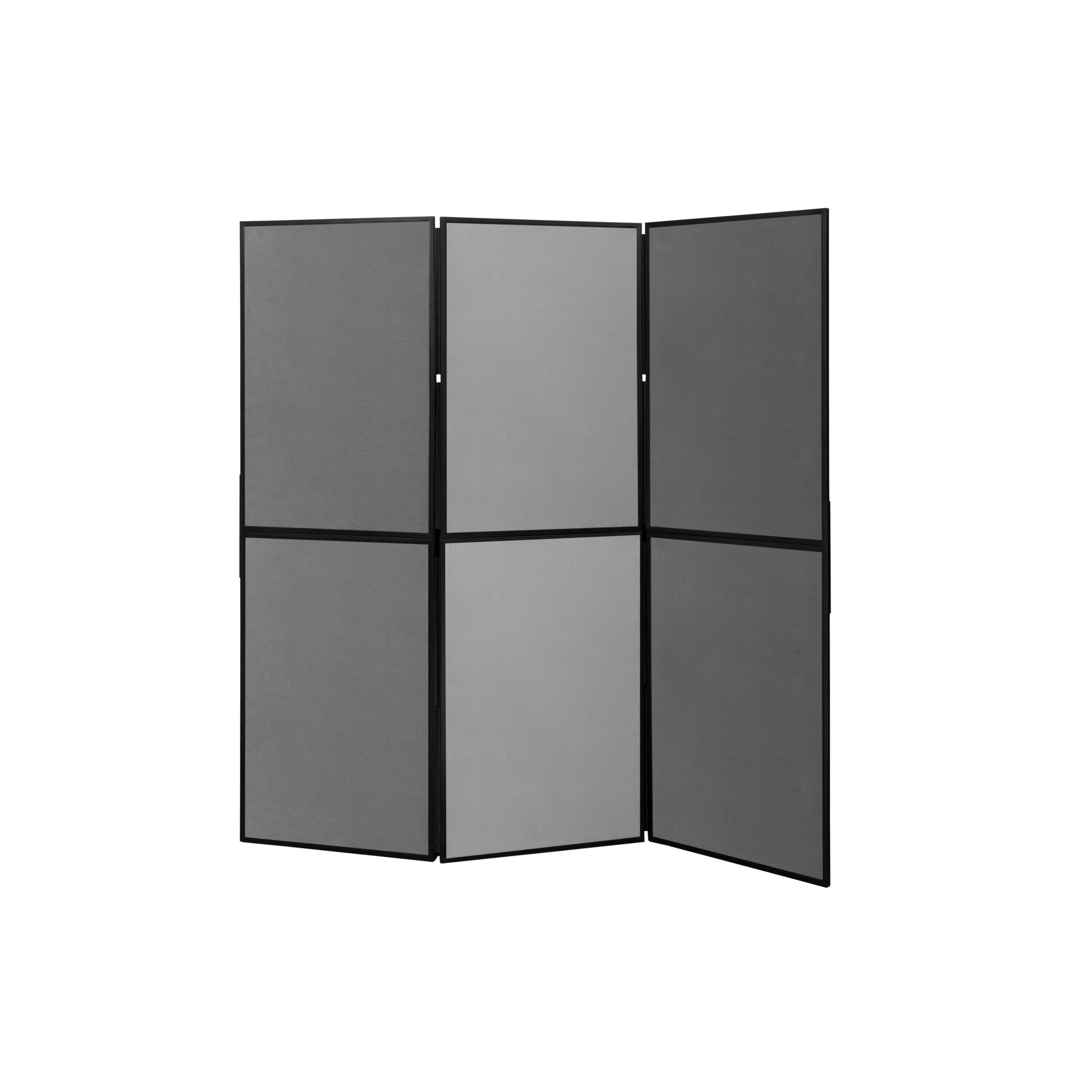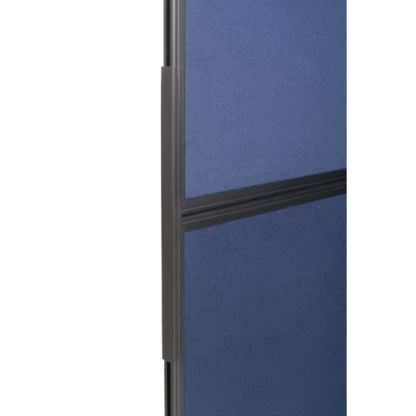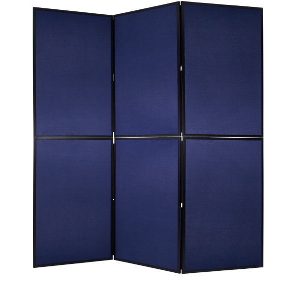 COMMERCIAL INFORMATION:Q-Connect 6 panel Display Board. The lightweight easy assembly folding display system allows smart and interactive space management, while creating extra surface to put up information. The display system can be folded flat and reconfigured or extended. Each panel has a black plastic frame and Blue nylon felt on one side and Grey nylon felt on the other side. This display system consists out of 6 panels. Panel dimensions: 60 x 90cm. Assembled dimensions: 180 x 180cm.